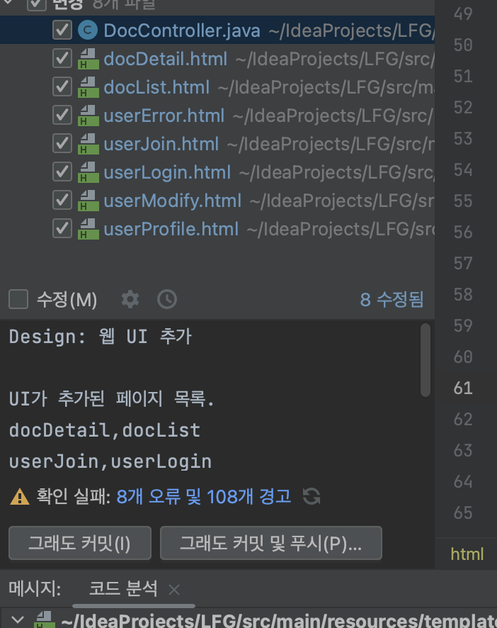 108개의 경고 모두 프론트 소스의 코드 인스펙션이 제대로 먹히지 않아서이다