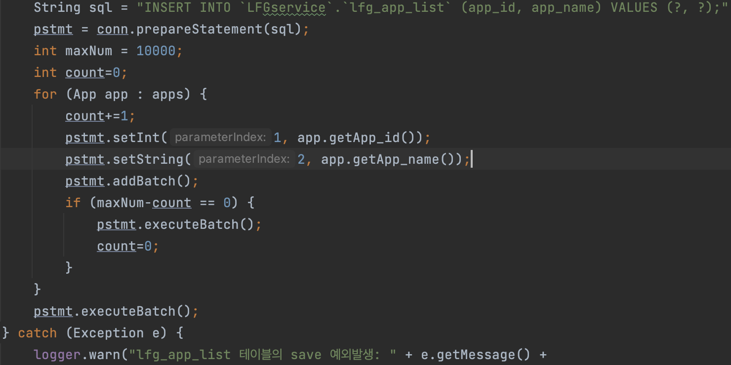 - excuteBatch() 메서드의 최대 쿼리요청수 제한