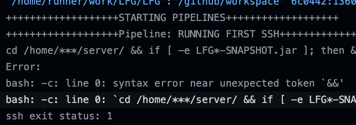 줄바꿈이 있을때 github actions 의 컴파일러가 && 를 추가해버리기때문에 에러가 난듯해보였다