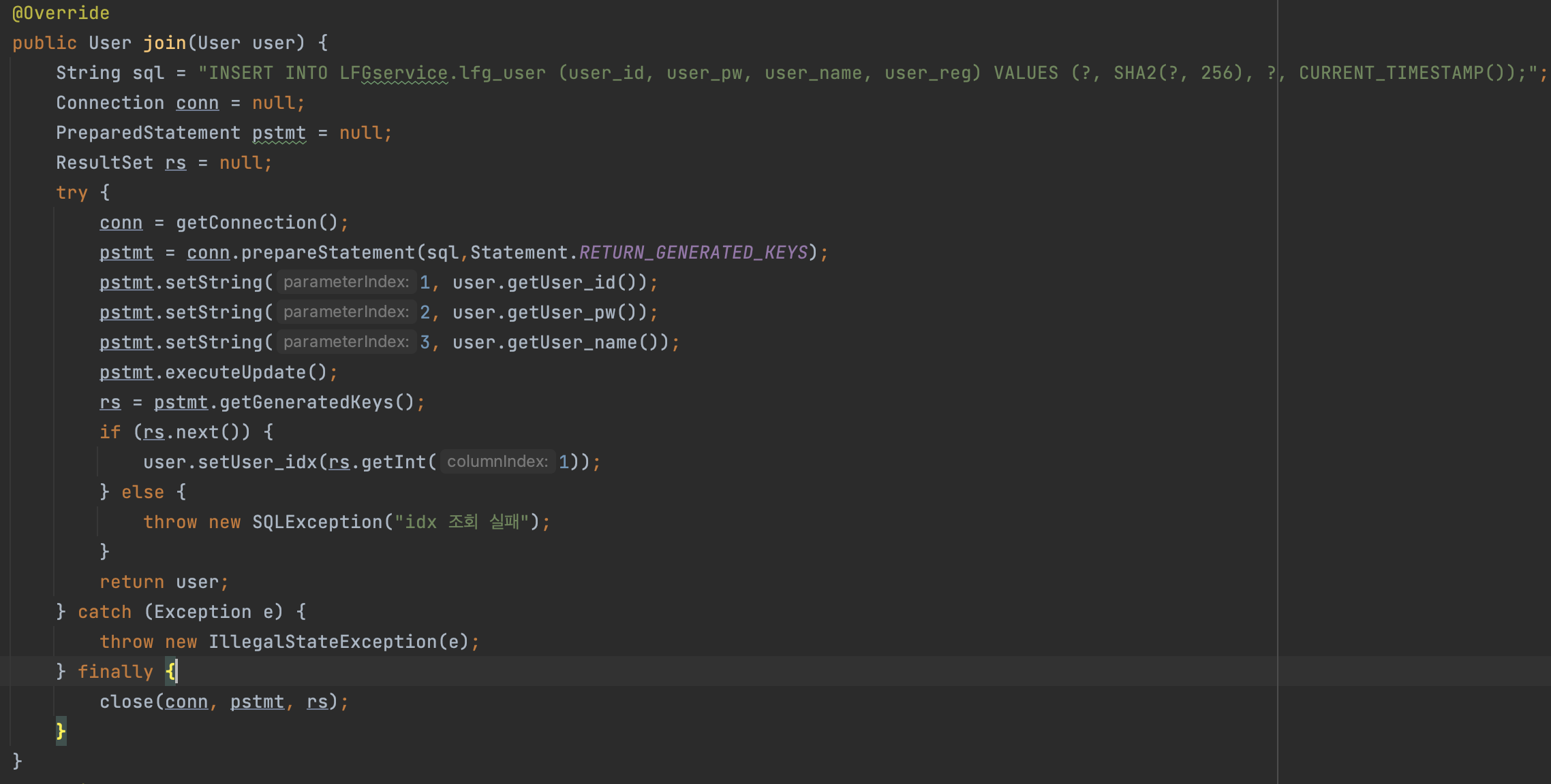 join()메서드는 받은user정보를 바인딩하여 쿼리를 만들고