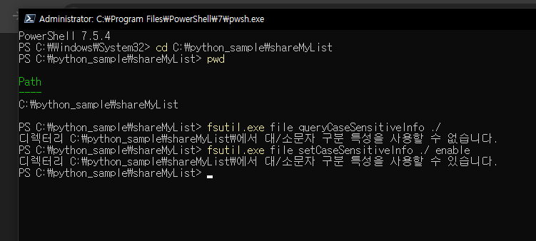 https://learn.microsoft.com/ko-kr/windows/wsl/case-sensitivity 여기서 대소문자 허용여부를 변경 할 수 있다고 한다