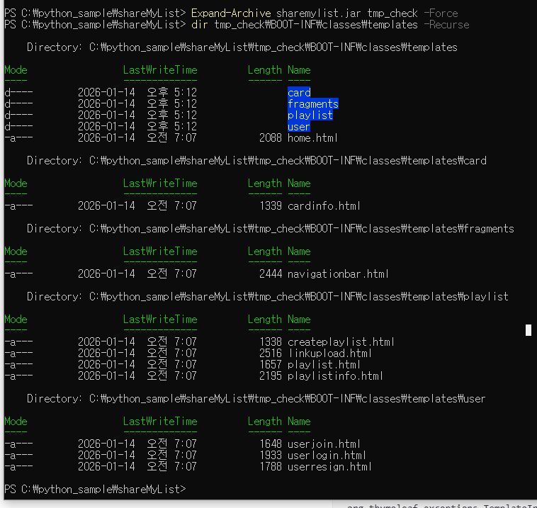 빌드된 jar에서 뽑아낸 따끈따끈한 파일명을 체크한다